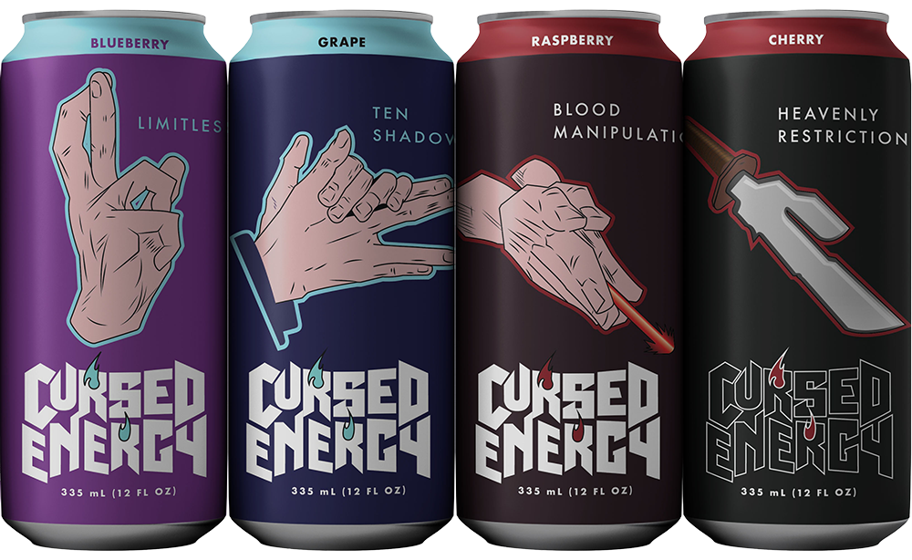 The challenge was to develop an energy drink brand that resonates with fans of Jujutsu Kaisen without using explicit imagery of the characters or logo.